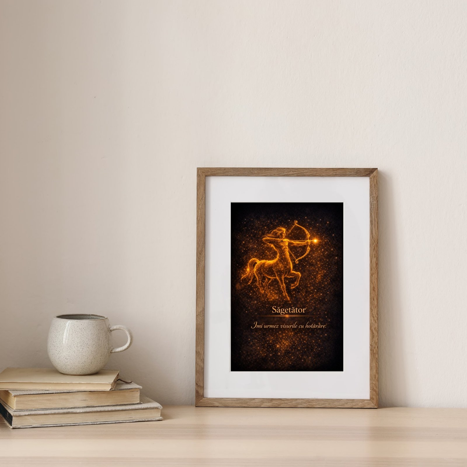 Acest cadou simbolic Sagetator este creat pentru cei care trăiesc cu dorința de explorare, sens și libertate interioară. Zodia Săgetător este asociată cu focul inspirației, cu aspirațiile înalte și cu capacitatea de a privi dincolo de limitele vizibile. Imaginea surprinde esența acestei energii printr-o compoziție luminoasă, caldă, care transmite mișcare, hotărâre și încredere.