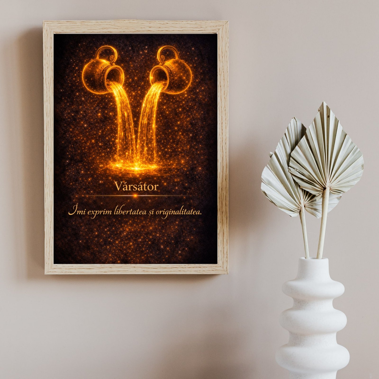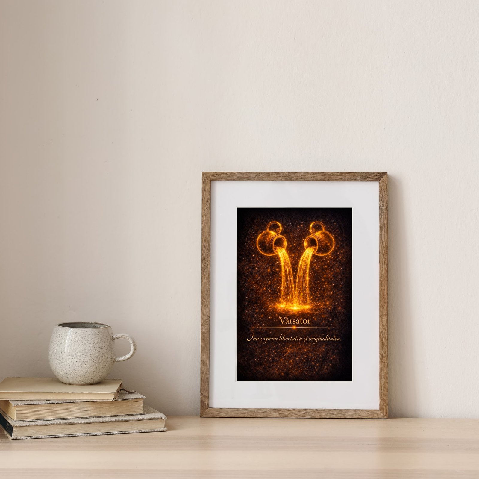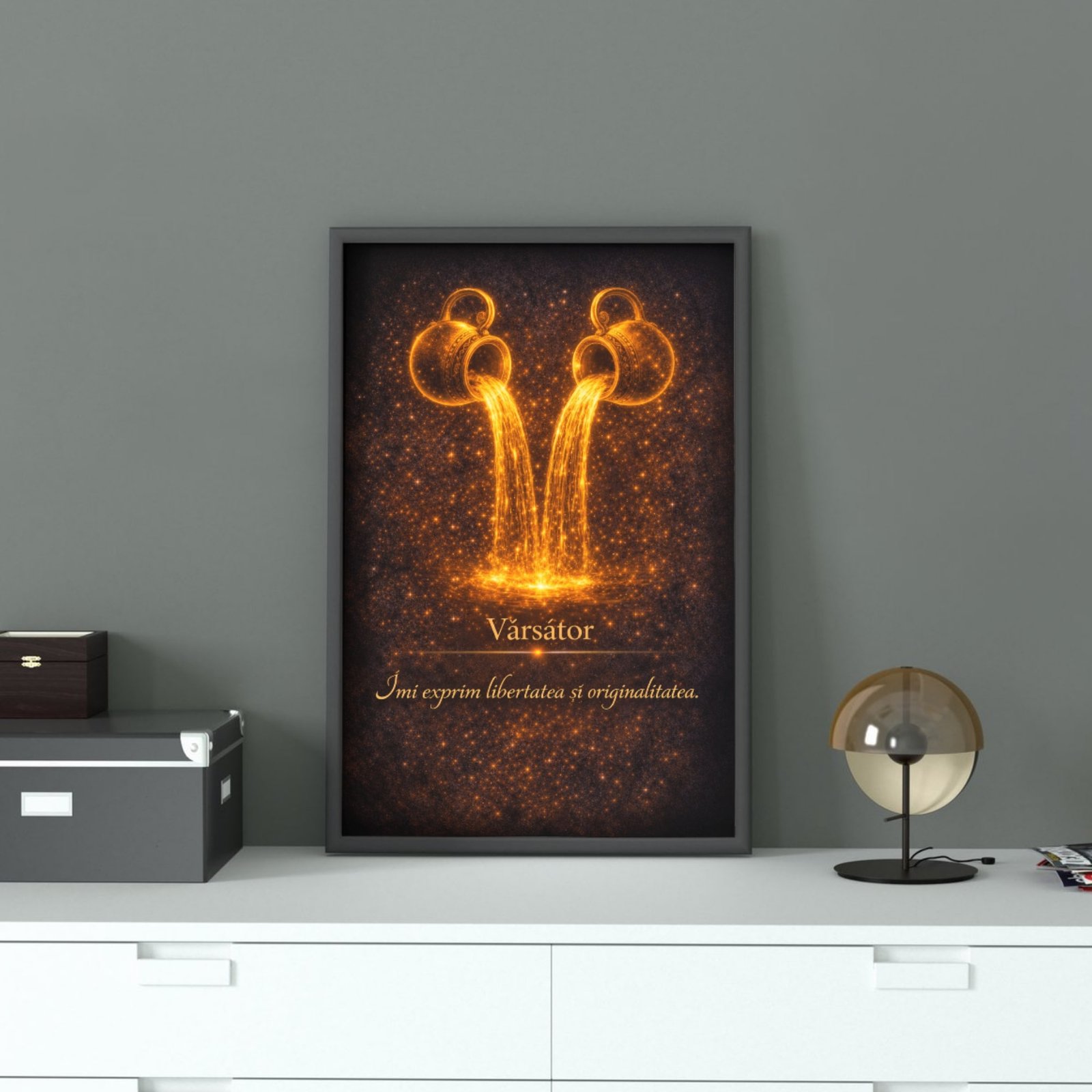 Acest cadou simbolic pentru Varsator este conceput pentru persoanele care nu urmează tipare, ci le creează. Imaginea surprinde simbolul Vărsătorului într-o interpretare luminoasă și modernă, sugerând fluxul ideilor, libertatea de gândire și curajul de a fi diferit. Mesajul „Îmi exprim libertatea și originalitatea.” devine o afirmație vizuală a identității personale.