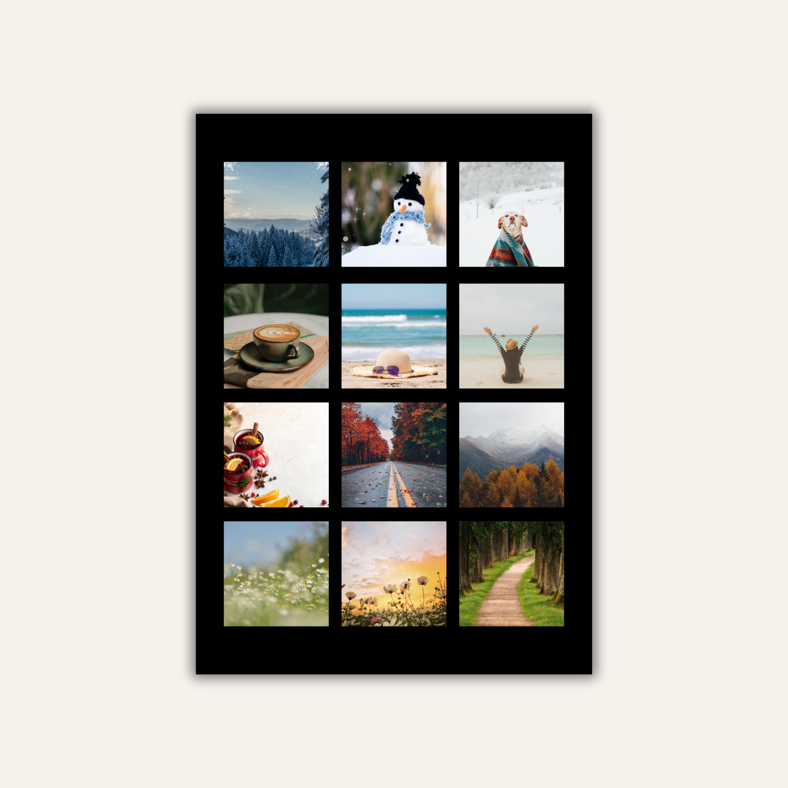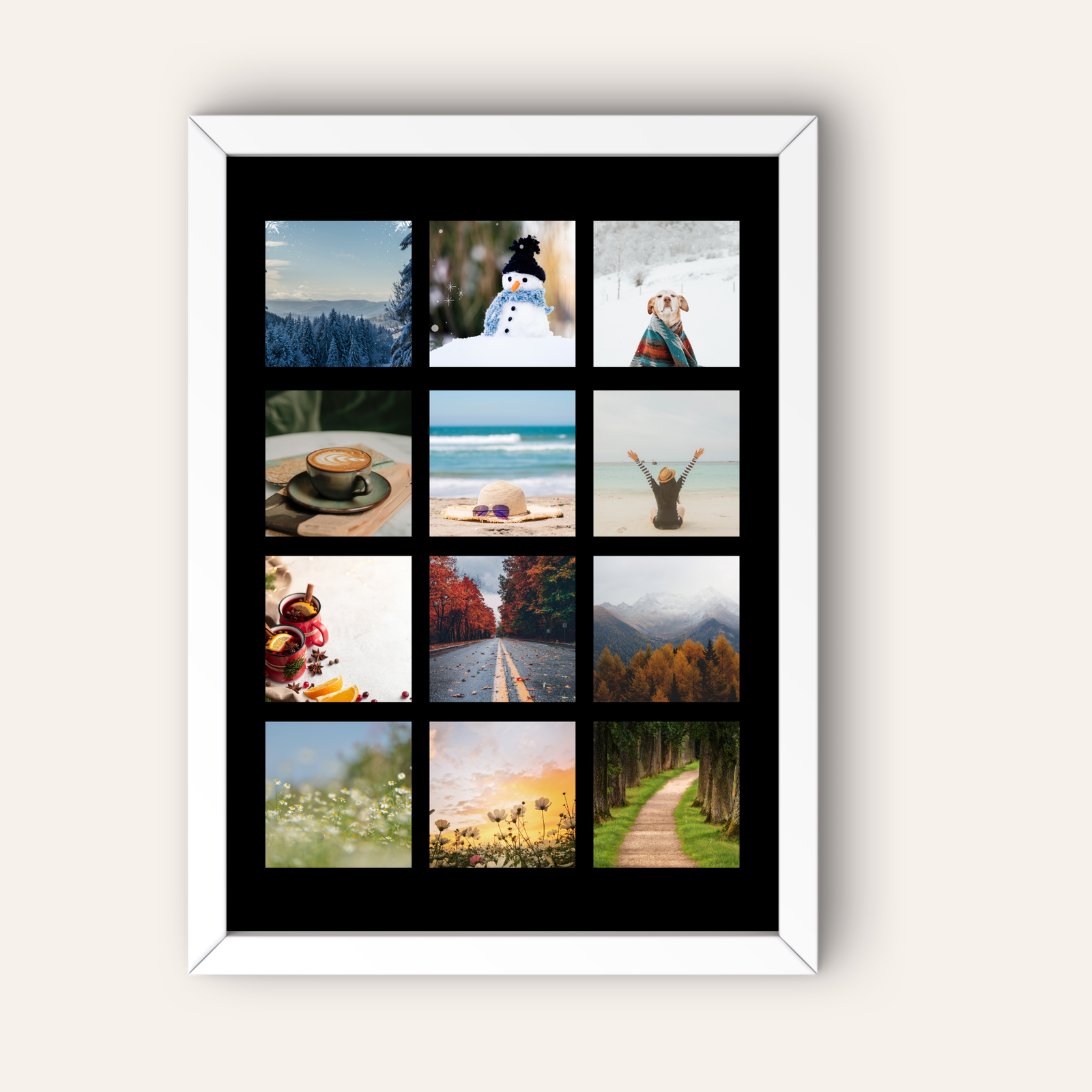 Formatul A4 este unul dintre cele mai apreciate pentru tablouri personalizate, deoarece este suficient de mare pentru a pune in valoare cele 12 fotografii, dar si suficient de compact pentru a se potrivi in orice incapere.