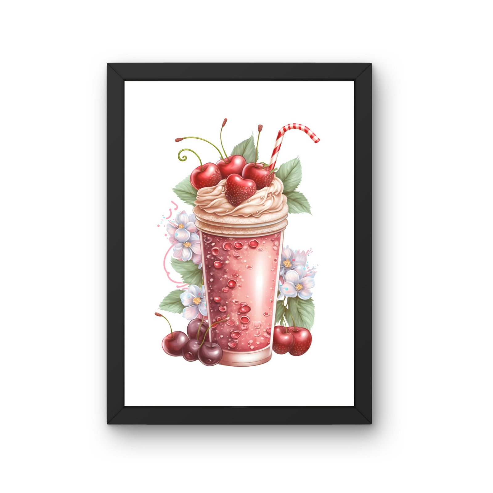 Acest tablou cu smoothie roz pentru bucatarie este disponibil cu rama neagra finisata elegant, un detaliu care il face usor de integrat si ii ofera un aspect rafinat. Rama contureaza frumos compozitia si creeaza un contrast placut cu tonurile mai deschise ale imaginii.
